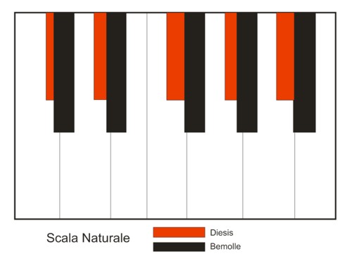Il nome "naturale" dipende dal fatto che in questo caso la serie delle note non si ottiene mediante la successione delle quinte, bensì dalla successione dei suoni armonici, cioè di quella serie di suoni che vengono emessi assieme a quello fondamentale ma che hanno minore intensità. Per la costruzione di questa scala si utilizza il suono fondamentale e tre dei suoi primi quattro armonici, cioè l'ottava, la quinta e la terza. Ponendo quindi a base della scala il Do1, si utilizzeranno il Do2, il Sol2 ed il Mi3. Per portare il Sol ed il Mi nell'ambito dell'ottava compresa tra Do1 e Do2 si dimezza la frequenza del Sol2 e si dimezza per due volte la frequenza del Mi3. In questo modo si ottengono quattro note della scala ed il pregio di queste note è che vengono formate dai rapporti che intercorrono tra i suoni armonici che, come dice il loro nome, sono assolutamente consonanti e "gradevoli" all'ascolto (cosa che non accadeva nel sistema pitagorico derivato dalle quinte). Con gli opportuni accorgimenti matematici, dagli armonici di un suono si possono ottenere ancora due note, il Re ed il Si, mentre non si possono ottenere il Fa ed il La. Queste ultime due note si ottengono "trasponendo" (cioè trasportando) la successione dei suoni già ottenuta Sol-Si-Do-Re-Mi alla quinta inferiore, ottenendo la serie Do-Mi-Fa-Sol-La. Utilizzando il solito sistema del rapporto tra i vari suoni (in questo caso il Do diventa il terzo armonico -cioè la quinta- del Fa), si ottiene la scala diatonica naturale completa. E' molto interessante notare come questo sistema di trasposizione assomigli molto al procedimento di "solmisazione" ideato da Guido d'Arezzo e che, in definitiva, esso si basi sulla suddivisione dell'ottava in una Quinta (Do-Sol) ed in una Quarta (Sol-Do).